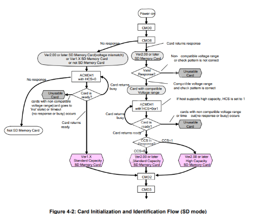 CS创世 SD NAND支持SD模式和SPI模式,但默认情况下,SD NAND处于SD模式。在SD模式下,设备的初始化过程如下:
