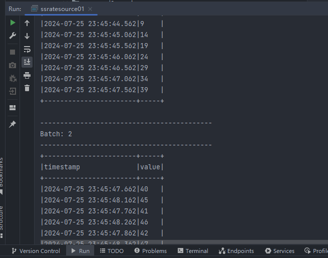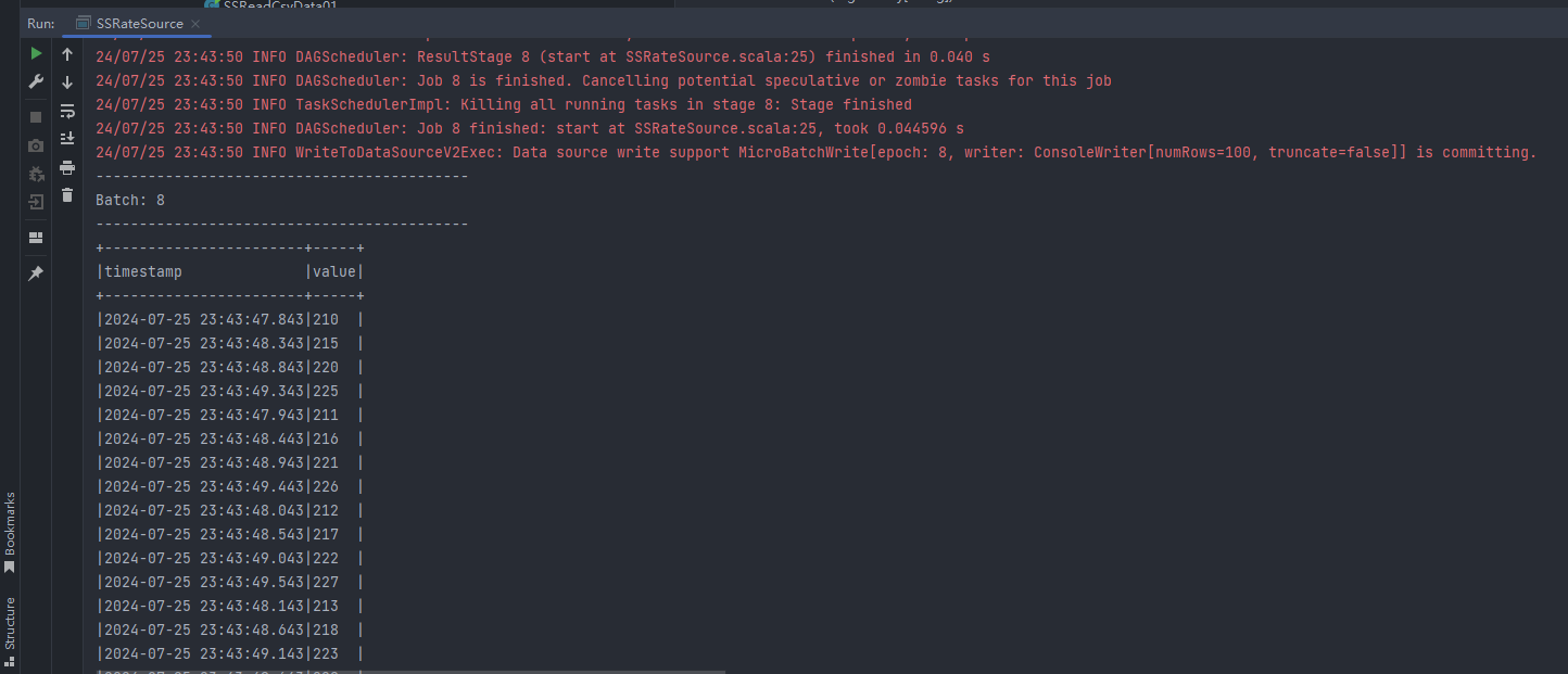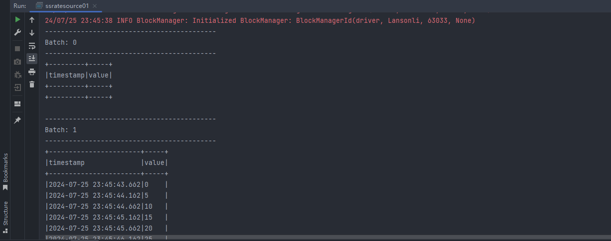 Rate Source是以每秒指定的行数生成数据,每个输出行包含一个timestamp和value,其中timestamp是一个Timestamp含有信息分配的时间类型,value是从0开始的Long类型的数据,Rate Source式多用于测试。