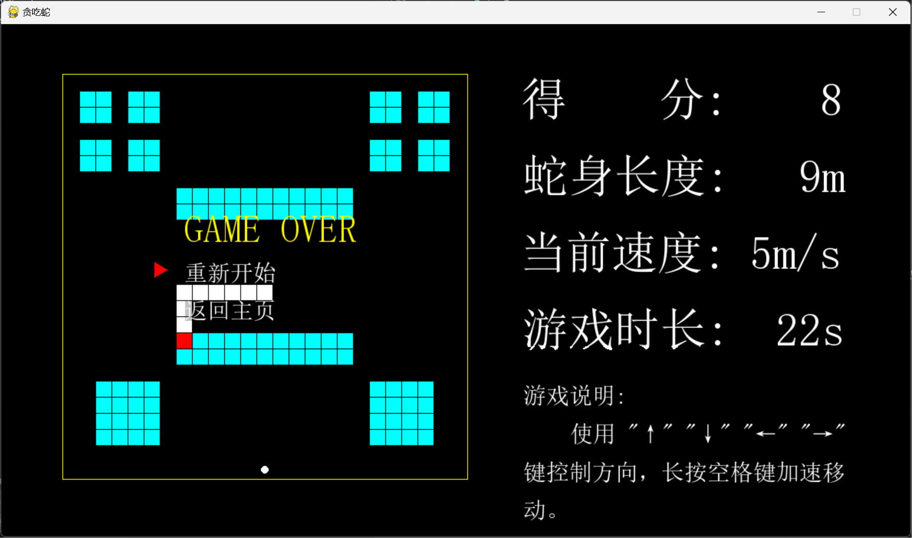 fl.render_to(screen, (240, 310), "重新开始", fgcolor=WHITE, bgcolor=(0, 0, 0, 60))