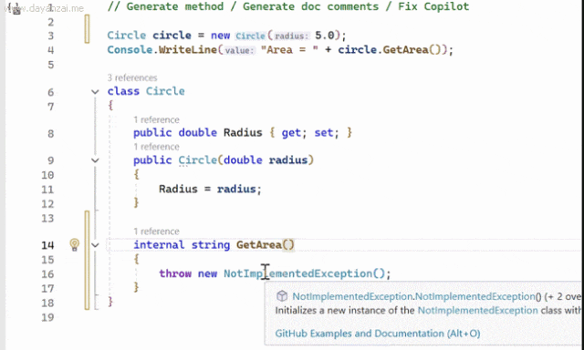 Copilot 现已无缝集成到 Visual Studio 代码编辑器中,从而显著提高了工作效率,具体体现在生成函数的文档注释。