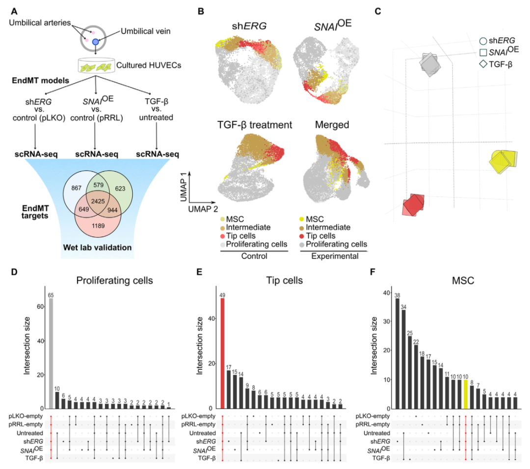 scRNA-seq 揭示三种EndMT诱导模型中的关键标记基因一致性: 👇