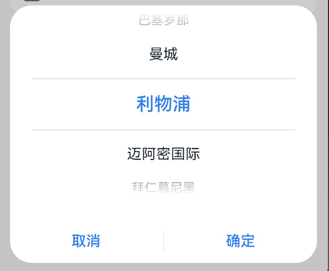 如下图所示,这里实现了一个选择“足球主队”的弹窗,用户上下滑动滑块再点击“确认”就可以完成选择。