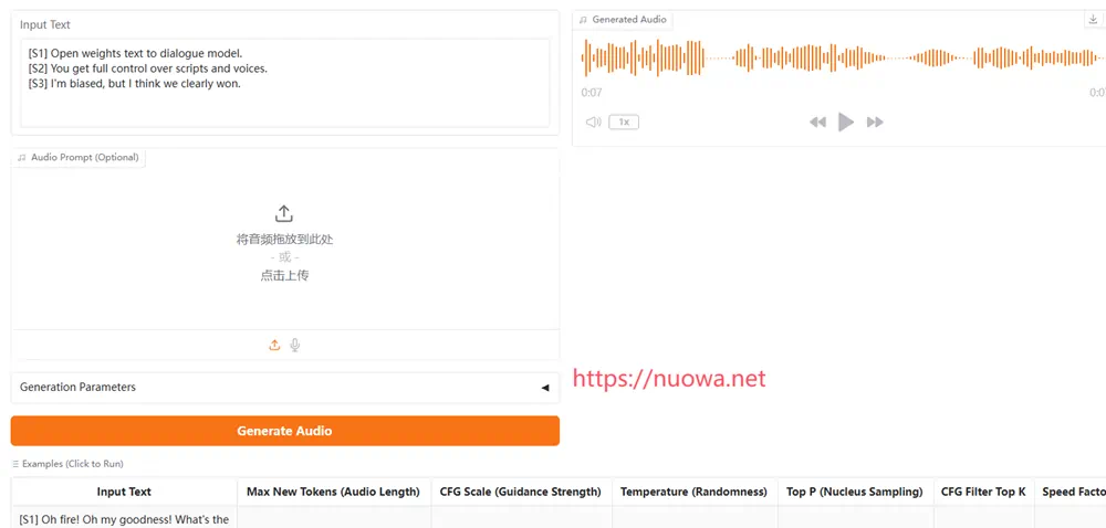 Audio Prompt里可以上传5-10秒的音频用于音色克隆,也可以忽略。