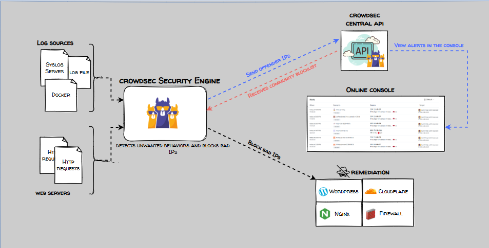 CrowdSec 是一款开源、协作式的安全工具,通过日志分析和社区共享的威胁情报,能够有效检测并阻止恶意行为