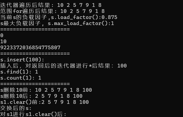 cout << "当前s的负载因子,s.load_factor():" << s.load_factor() << endl;