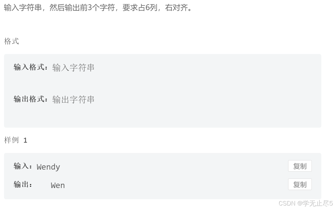 }输入字符串,然后输出前3个字符,要求占6列,右对齐。