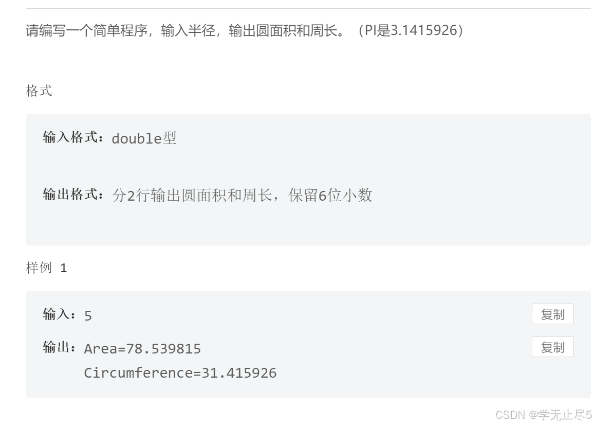}请编写一个简单程序,输入半径,输出圆面积和周长。(PI是3.1415926)