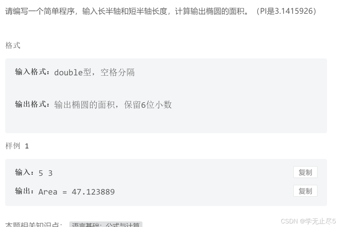 }请编写一个简单程序,输入长半轴和短半轴长度,计算输出椭圆的面积。(PI是3.1415926)