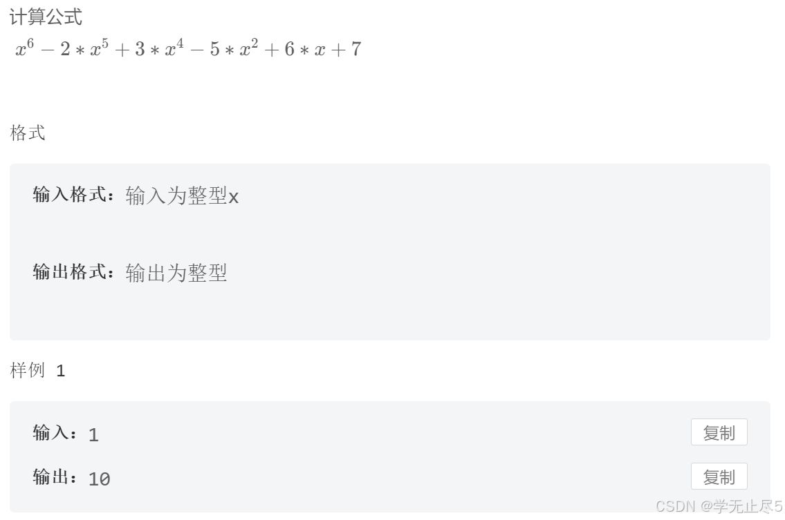 System.out.println((int)(Math.pow(x,6)+3*Math.pow(x,4)-2*Math.pow(x,5)-5*Math.pow(x,2)+6*x+7));