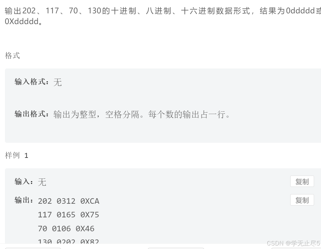 }输出202、117、70、130的十进制、八进制、十六进制数据形式,结果为0ddddd或0Xddddd。