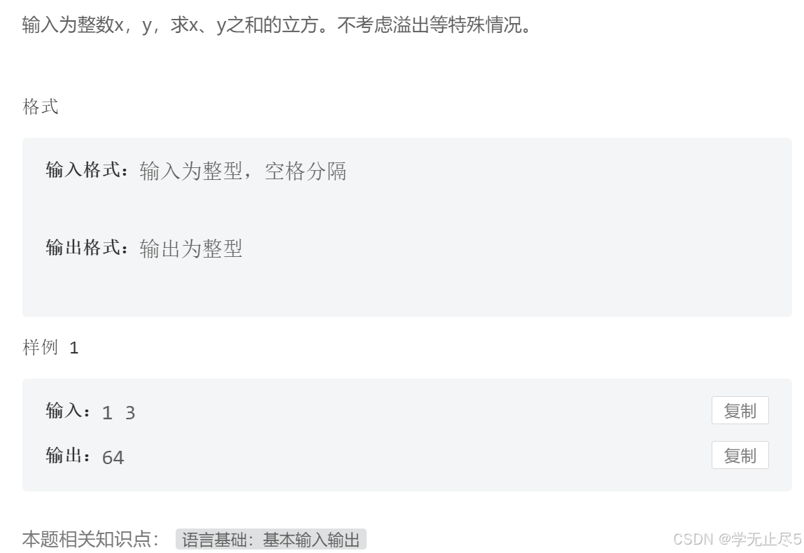 输入为整数x,y,求x、y之和的立方。不考虑溢出等特殊情况。