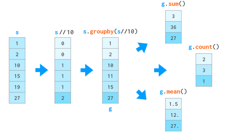 在数据处理中,一个常见的操作是计算一些统计量,不是针对整个数据集,而是针对其中的某些组。第一步是通过提供将一系列(或一个dataframe)分解为组的标准来定义一个“智能对象”。这个智能对象
