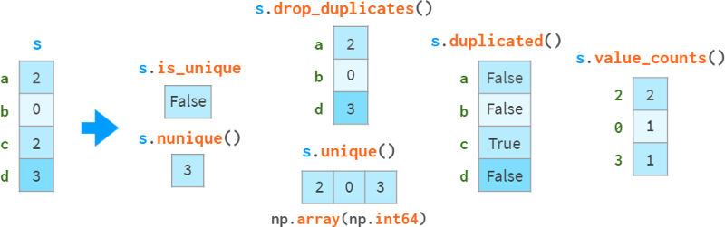 由于序列中的每个元素都可以通过标签或位置索引访问,因此argmin (argmax)有一个姐妹函数idxmin (idxmax),如下图所示: