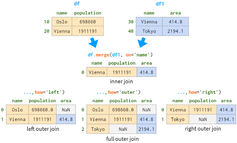 join比concat更可配置:特别是,它有五种连接模式,而concat只有两种。详情请参阅下面的“1:1关系连接”部分。