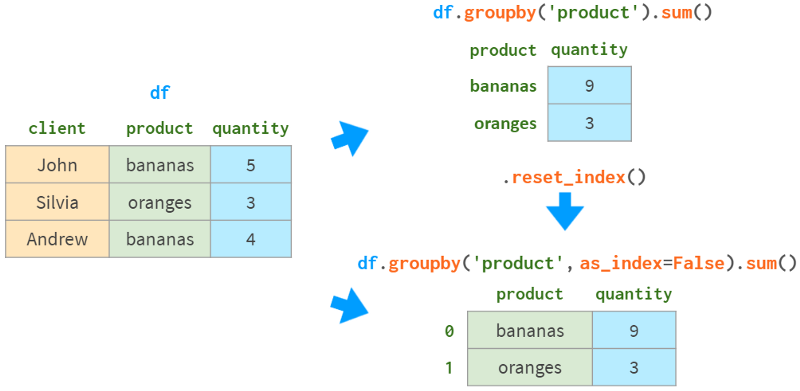 如果没有as_index=False, Pandas将进行分组的列指定为索引。如果这不是我们想要的,可以使用reset_index()或指定as_index=False。