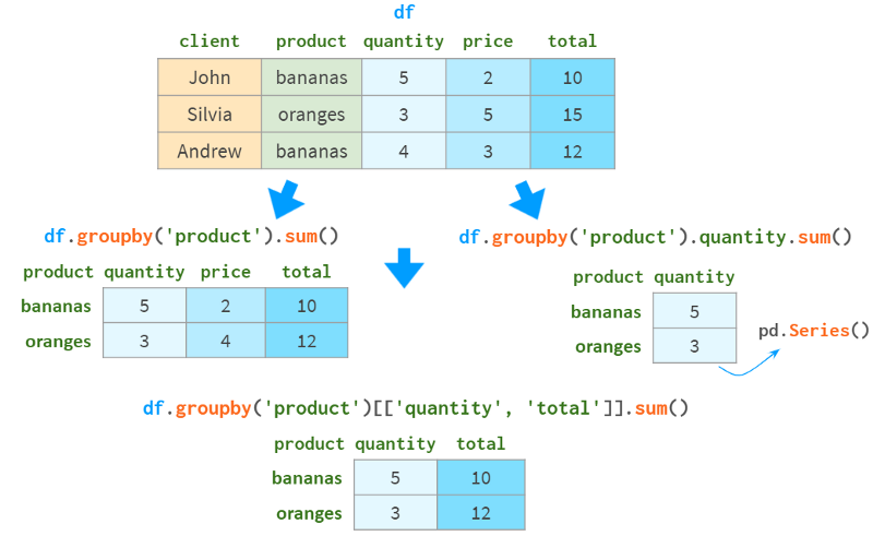 注意,当对单个列求和时,你将得到一个Series而不是DataFrame。如果出于某种原因,你想要一个DataFrame,你可以: