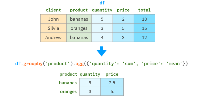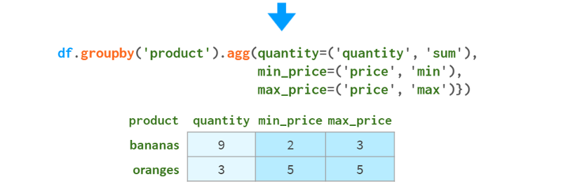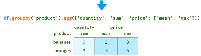 显然,不同的列在分组时表现不同。例如,对数量求和完全没问题,但对价格求和就没有意义了。使用。agg可以为不同的列指定不同的聚合函数,如下图所示: