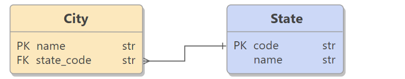 这是数据库设计中使用最广泛的关系,表A中的一行(例如“State”)可以与表B中的几行(例如城市)相关联,但表B中的每一行只能与表A中的一行相关联(即一个城市只能处于一种状态,但一个状态由多个城市组成)。