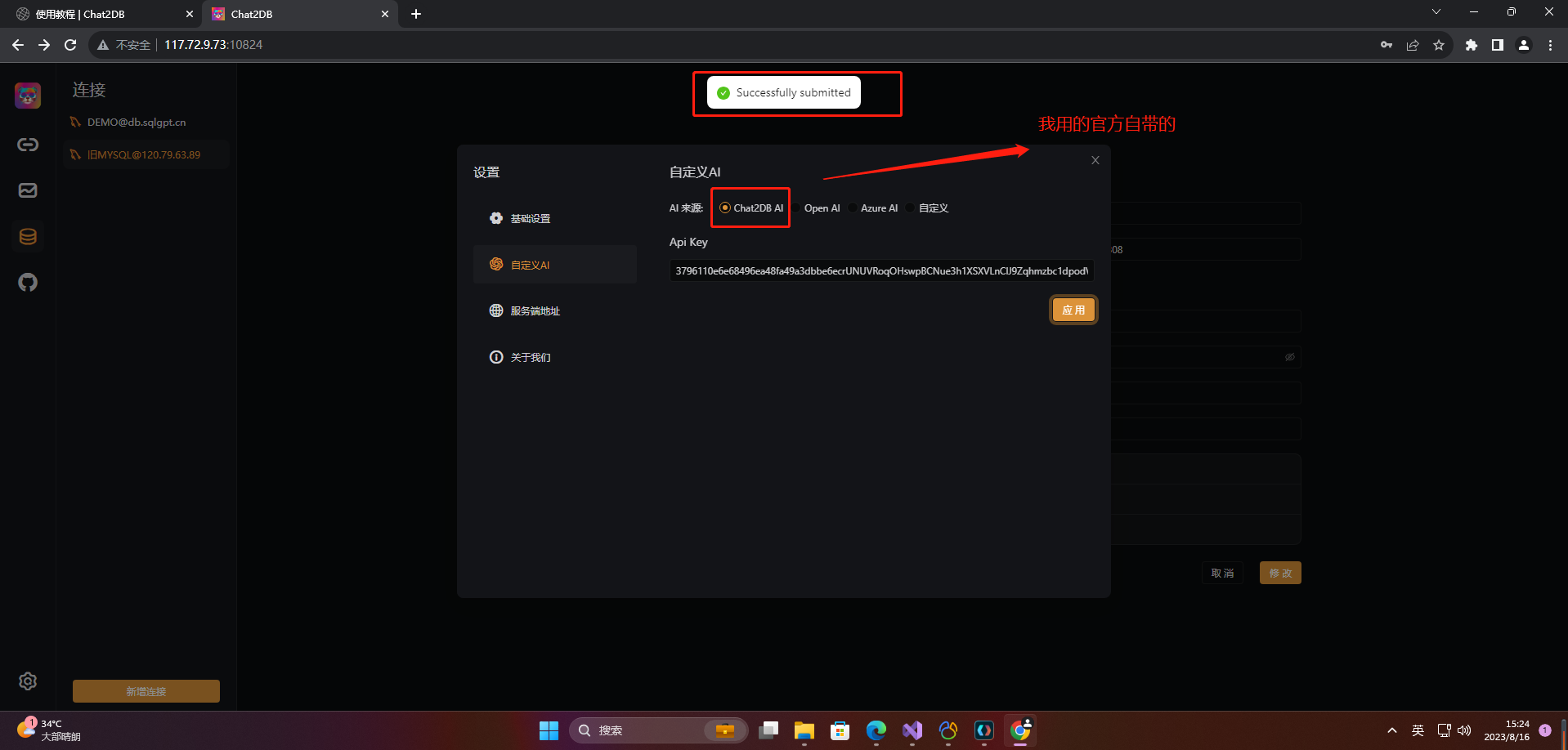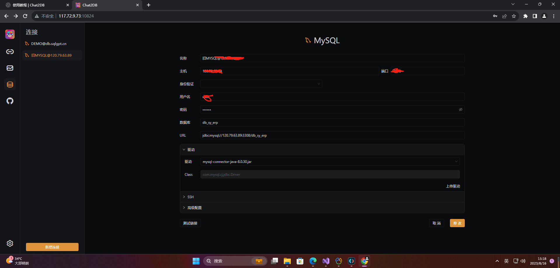 // 如果这里提示 The container name "/chat2db" is already in use by container, 代表已经存在容器了 运行