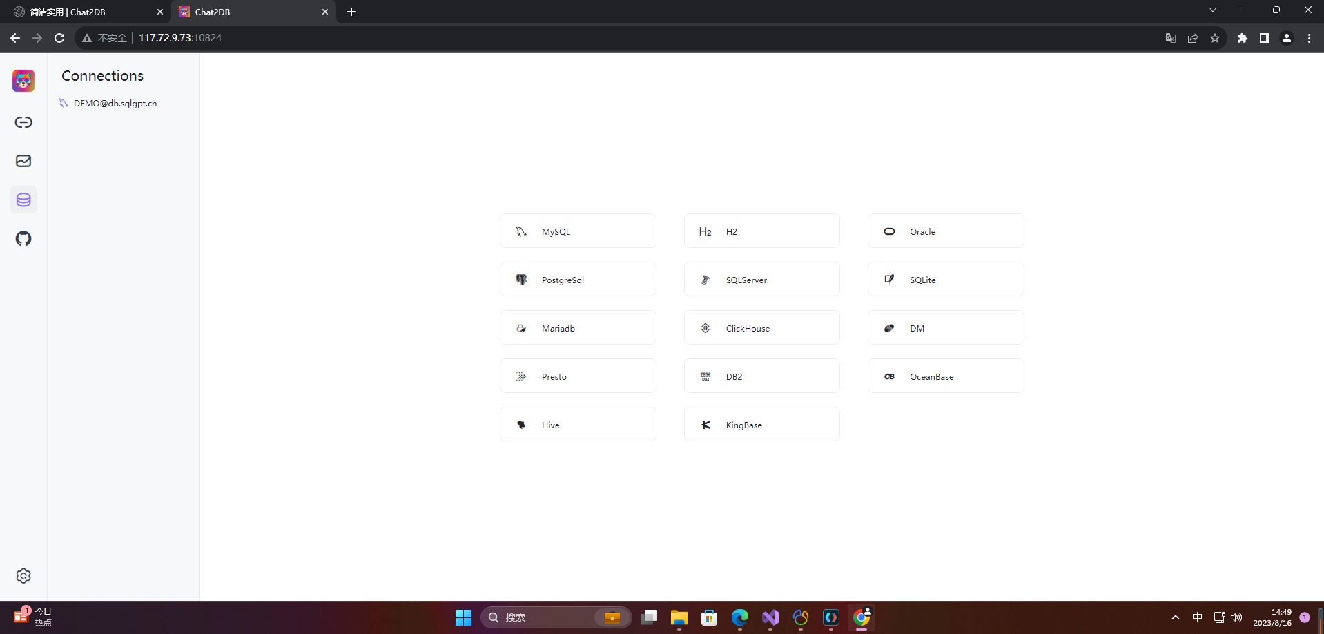 docker run --name=chat2db -p 10824:10824 chat2db/chat2db:latest