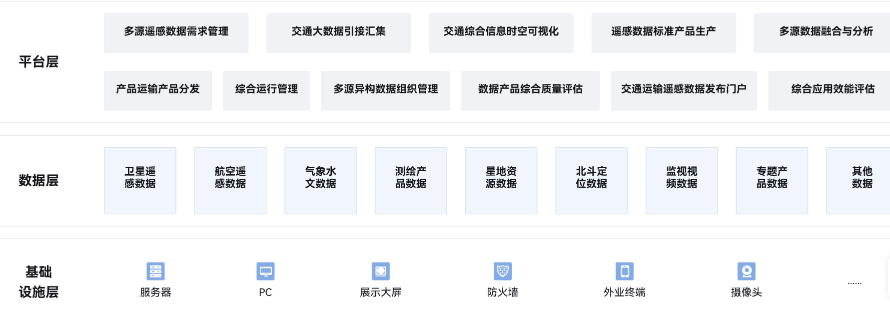 方案以现代信息技术与智能化技术为核心支撑,集成大数据、互联网、IoT(物联网)、云计算、GIS(地理信息系统)、遥感、人工智能等前沿技术,构建起覆盖数据采集、处理、分析、应用的全技术链条。通过多技术融合形成的协同效应,为交通领域复杂问题的系统性解决提供了底层技术保障 —— 既实现了空天遥感数据与地面物联网终端的实时联动,又通过云计算与 AI 算法构建智能分析引擎,打破传统交通管理的技术壁垒。