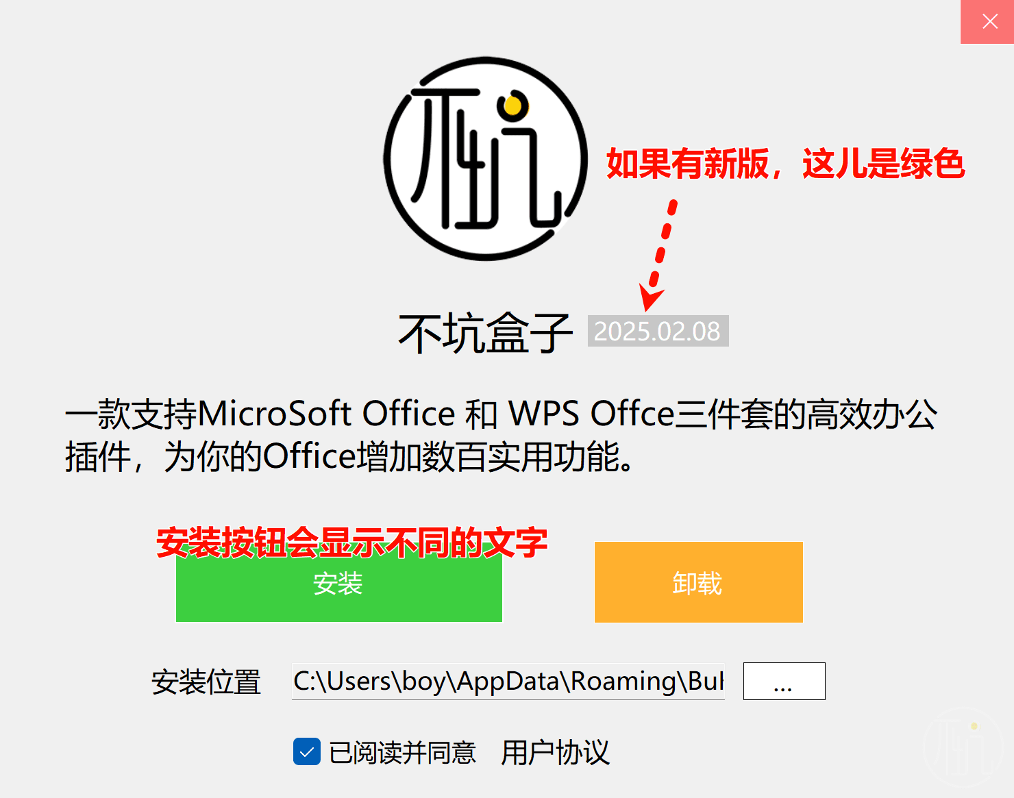 有的小伙伴电脑上安装的原版不坑盒子太老,在Office中可能会出现2个“不坑盒子”,直接进入插件的安装目录,运行“_uninstall.bat”文件即可彻底清除。
