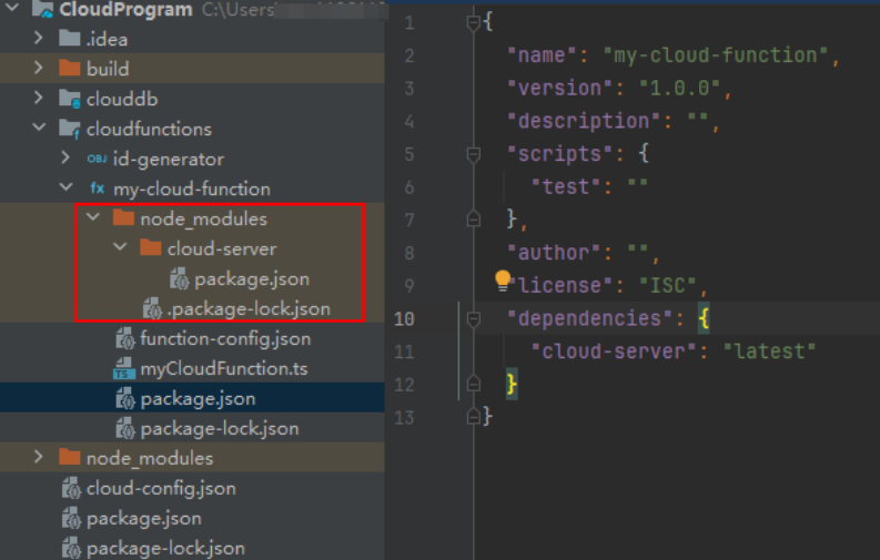 “cloudfunctions”目录下生成新建的“my-cloud-function”函数目录,目录下主要包含如下文件:
