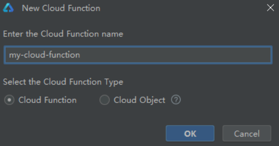 2. 在“Select the Cloud Function Type”栏选择“Cloud Function”,输入云函数名称(如“my-cloud-function”),点击“OK”。