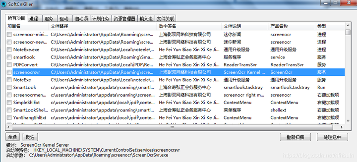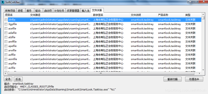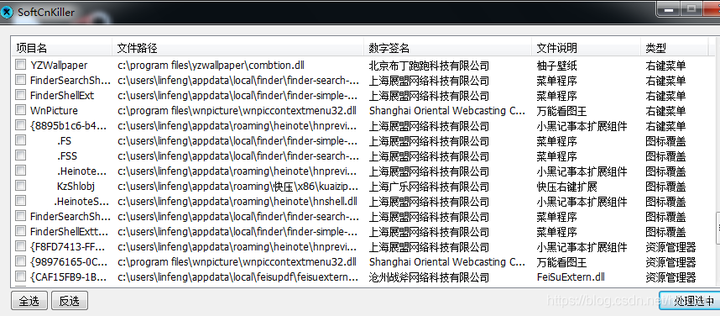 或者勾选集成到右键,之后右击流氓软件文件或目录,选adwview,之后再点softcnkiller也可以扫描文件或文件夹关联项。