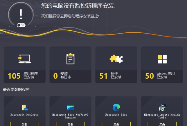 首次运行软件,它会自动检测电脑上已安装的第三方应用、浏览器插件、以及Windows自带应用。