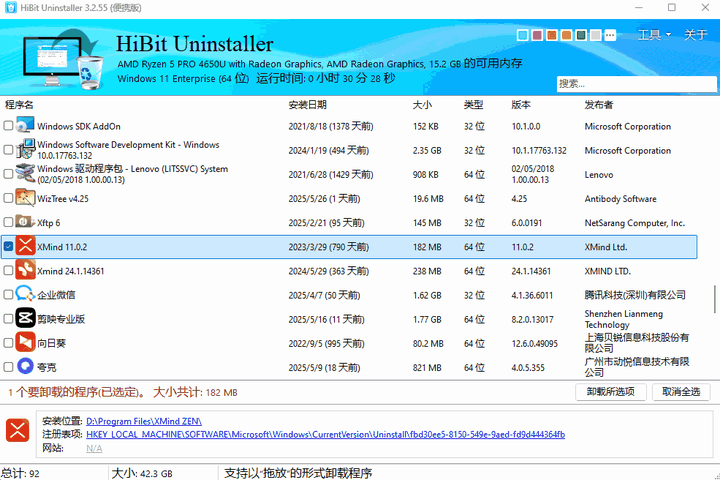 HiBit Uninstaller是一个Windows软件工具,这个小工具可以帮助我们把电脑中不需要的软件完全删除,其功能非常全面,系统垃圾清理、注册表清理、引导键管理、右键菜单管理、定时任务管理等清理功能。