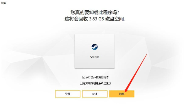 以Steam为例,选中需要卸载的软件,阿香婆会进行两次操作,第一次调用Steam自带的卸载程序,进行原生卸载。