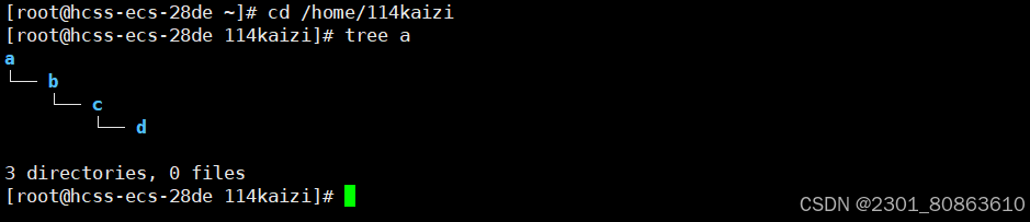 [root@hcss-ecs-28de 114kaizi]# 那么到这里我们的114kaizi这个文件里面就没有a/b/c这个目录串了