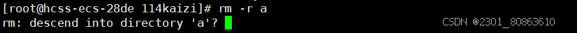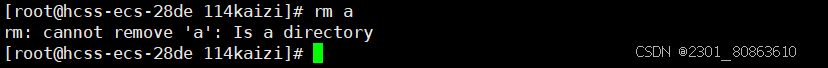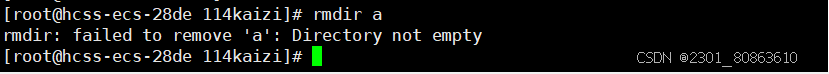 [root@hcss-ecs-28de 114kaizi]# 我们在这个114kaizi这个目录对a进行删除的操作,但是系统报错,说a这个目录不是空的额,我们删除不了