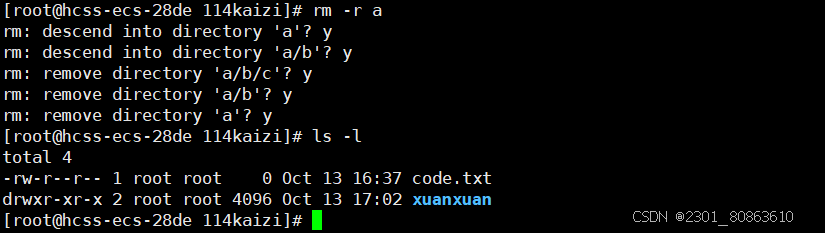 [root@hcss-ecs-28de 114kaizi]# rm -r a