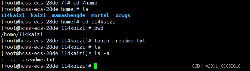 [root@hcss-ecs-28de 114kaizi]# touch .readme.txt