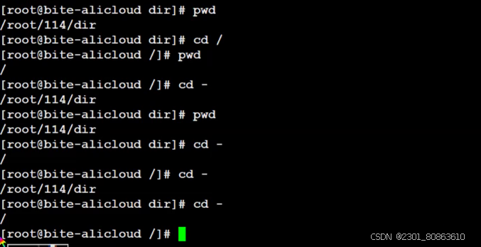 cd -能让用户快速返回上一次所在的目录,这在需要频繁切换不同目录时非常有用。
