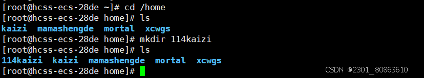 [root@hcss-ecs-28de home]# mkdir 114kaizi