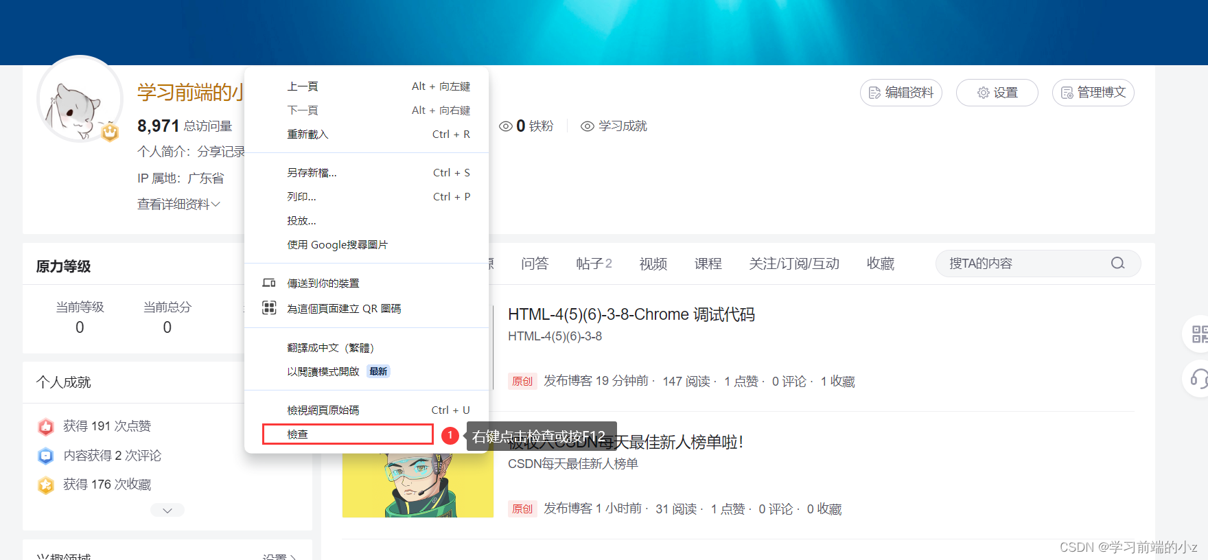 打开 Chrome 浏览器,我们可以通过多种方式打开调试工具,最常见的两种方法是: