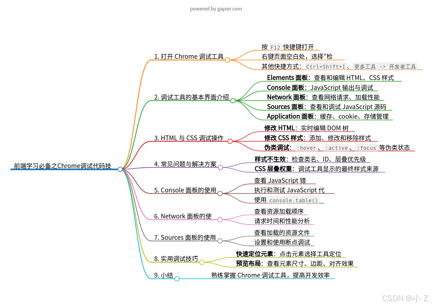 Chrome 浏览器提供的调试工具是前端开发者不可或缺的工具,通过它我们可以深入了解页面的 HTML 结构、CSS 样式、JavaScript 代码以及页面的加载情况。本文详细介绍了如何打开和使用调试工具、如何调试 HTML 和 CSS、如何使用 Console 面板以及其他一些实用的调试技巧。 熟练掌握 Chrome 调试工具,可以大大提高我们开发和调试网页的效率,让我们的前端开发之路更加轻松愉快。