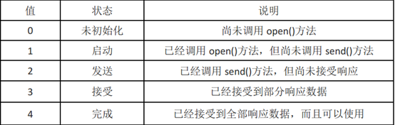 // 监听readystate事件 (0=尚未调用open方法;1=已调用open方法未调用send方法,2=调用send方法,未接收到响应;3=接收到部分响应;4=响应完全接收)