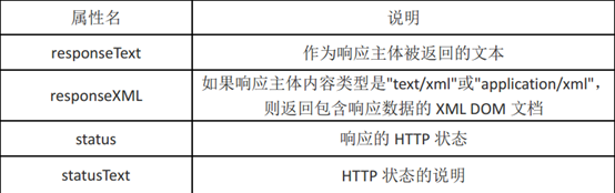 当请求发送到服务器端,收到响应后,响应的数据会自动填充 XHR 对象的属性。那么一共有四个属性: