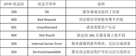 接受响应之后,第一步检查 status 属性,以确定响应已经成功返回。一般 情况 HTTP 状态代码为 200 作为成功的标志。除了成功的状态代码,还有一些别 的: