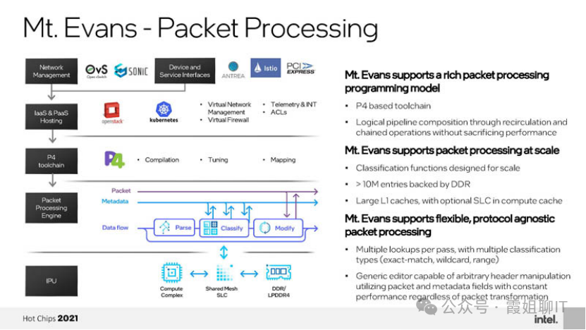 E2100芯片架构示意图如下:除上述表格描述的器件外,它还集成了数据包处理流水线,NVMe、支持 Falcon 可靠传输或 RoCEv2 协议的 RDMA,以及压缩和加密加速器。