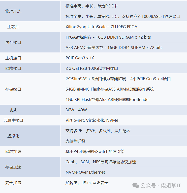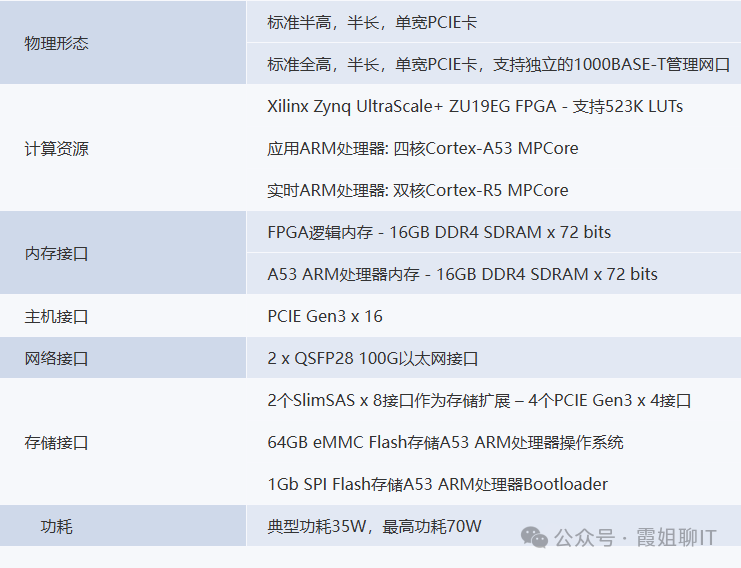有2个100G网络接口、4个PCIEx4 SlimSAS存储接口,ZU19EG FPGA还集成了523K可编程逻辑单元和4个1.5G ARM A53 CPU核。