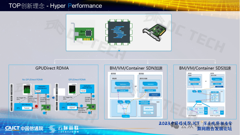 metaVisor AI DPU基于云脉芯联自主知识产权核心技术研发设计,除了支持传统DPU的云计算VPC网络卸载和存储卸载,还提供了高性能RDMA网络能力,独创HyperDirect技术可以有效加速GPU和AI芯片的计算效率。