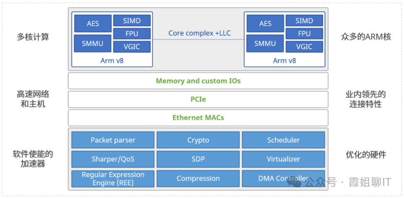 还配备众多的硬件处理引擎,可实现网络、存储和安全的全面加速: