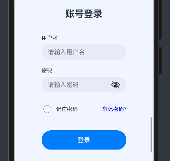 Text("忘记密码?").fontSize(14).fontColor(Color.Blue)