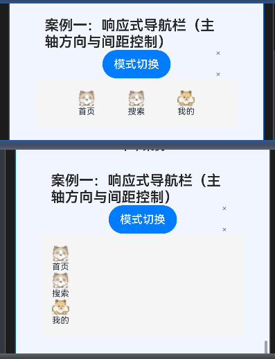 Text("案例一:响应式导航栏(主轴方向与间距控制)")
