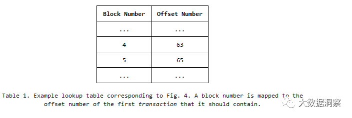 Solution 4b. So each OSN needs to maintain a table per chain, mapping block numbers, to the first offset that they contain - Table 1 shows an example of this. Note that this means that an OSN cannot accommodate a Deliver request unless it has built a lookup table that includes the requested block number.